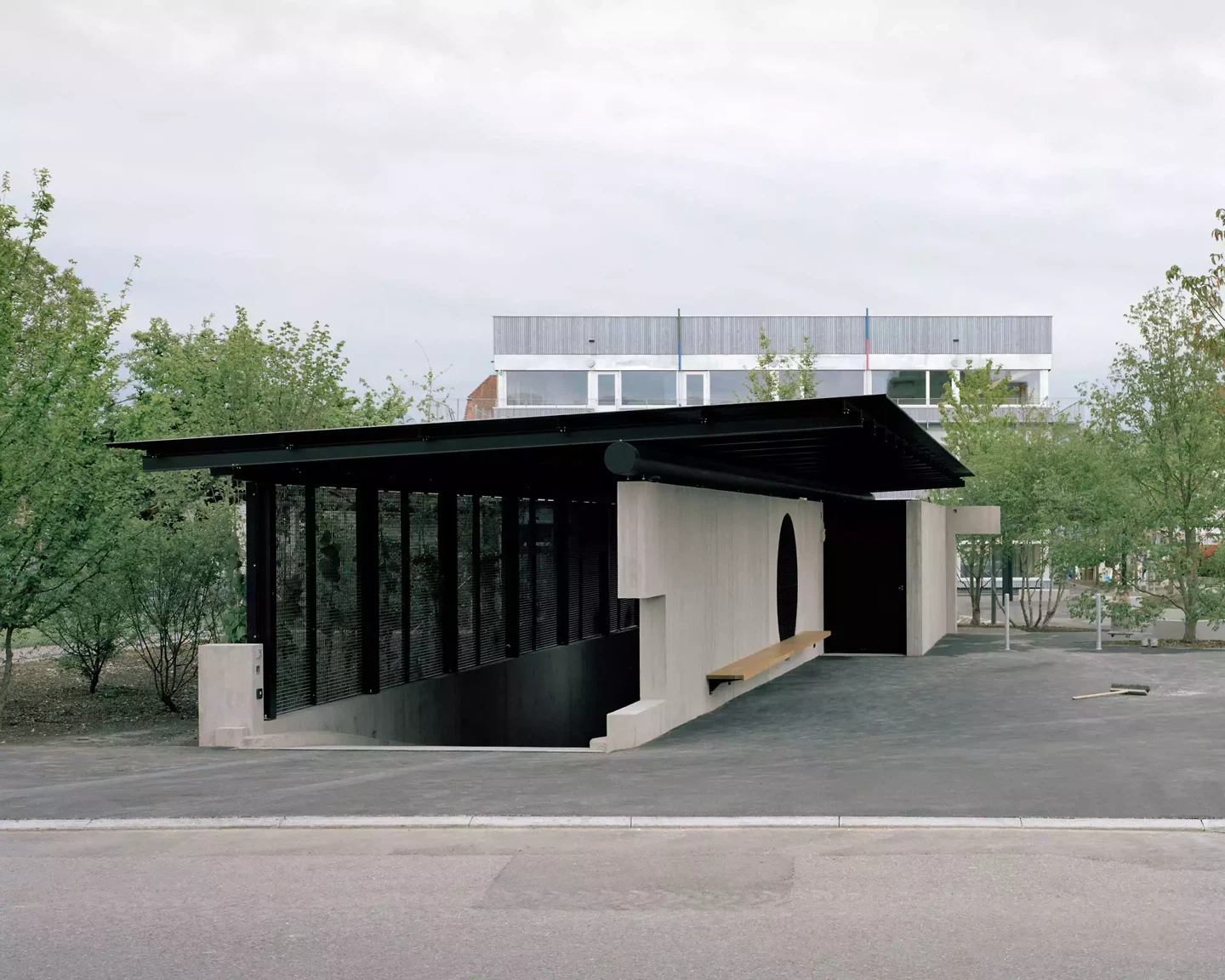 Le site de Bogenacker et Tannenbühl comprenait deux écoles primaires et plusieurs petits bâtiments autour d'un centre jusqu'alors indéfini. Avec la réorganisation de ce centre, le nouveau campus scolaire de Dürnten réussit à regrouper les terrains scolaires, trois jardins d'enfants et dix classes régulières sur trois sites en une seule unité. L'école centrale est reconstruite sous la forme d'un bâtiment scolaire moderne avec trois «nefs». La zone d'accès – le centre et la «nef de service» avec une entrée spacieuse et un escalier extérieur – est en béton brut. Les deux «nefs latérales» disposées latéralement, construites en éléments de bois durables, forment la couche librement divisible des espaces utilitaires qui abritent les salles de classe pour les élèves. Des éléments en bois périphériques encadrent les pièces et leur confèrent une apparence paisible. La nef en trois parties est unifiée par une façade en bois pré-patiné et un balcon métallique périphérique en saillie. Le bâtiment scolaire pourra être agrandi à l'avenir, répondant ainsi aux critères de durabilité et de flexibilité.