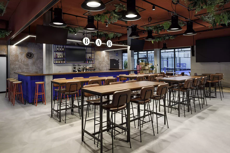 - En quoi ce projet de construction est-il particulier? Le défi particulier de ce projet consistait à associer un gymnase classique à un espace événementiel et de détente à la décoration intérieure très travaillée. L'objectif n'était pas seulement de créer un complexe de padel fonctionnel, mais aussi un lieu doté d'une forte identité, alliant sport, restauration et rencontres, et traduisant dans l'espace le caractère de ce sport en plein essor.