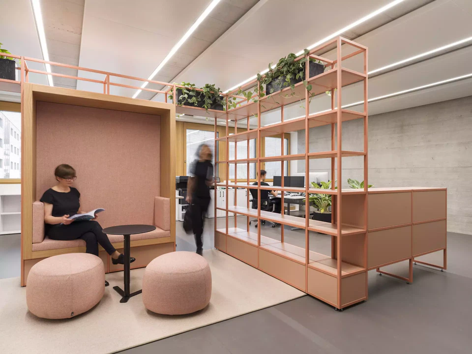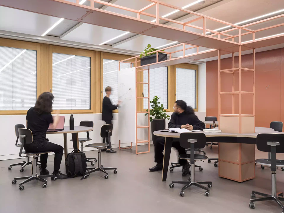 Le processus de planification s’est déroulé en étroite collaboration avec la direction de l’école et le corps enseignant; les expériences issues d’espaces d’apprentissage comparables, comme la Loft School Uster, ont nourri et enrichi la conception. En tant qu’intervention temporaire dans un bâtiment loué, toutes les mesures ont dû être coordonnées avec le propriétaire et adaptées aux exigences de protection incendie et aux voies d’évacuation. L’objectif était de concilier les besoins pédagogiques contemporains avec les potentialités architecturales du bâtiment.