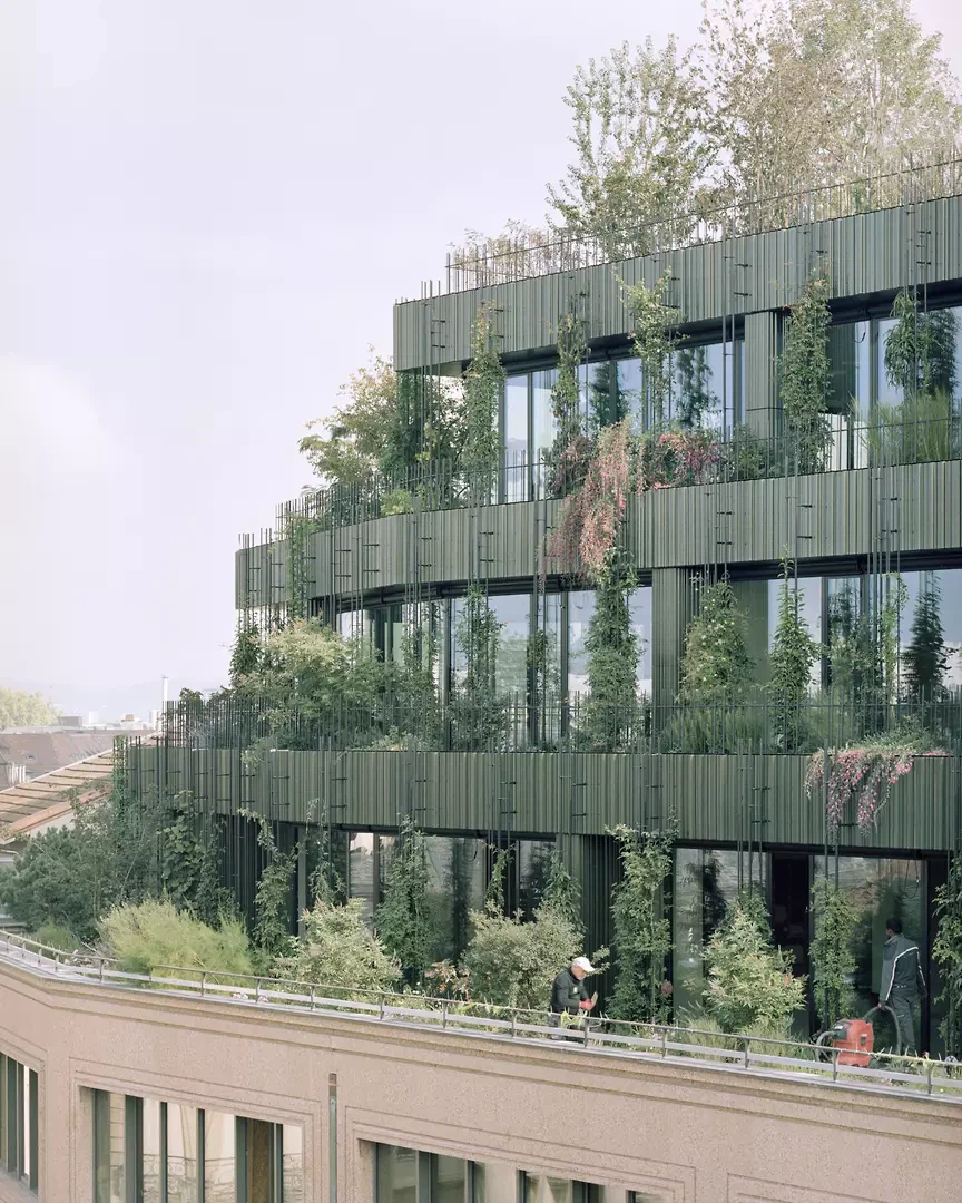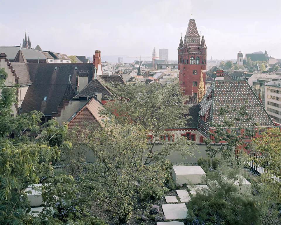 Le projet de réaménagement du Globus respecte le patrimoine bâti, fruit de plus de 120 ans d'évolution, avec ses ruptures architecturales, et le transpose dans une nouvelle structure cohérente. Les façades historiques issues de différentes phases de construction sont conservées, tandis que l'intérieur du bâtiment est réorganisé et ouvert sur le plan spatial. Une articulation spatiale verticale centrale remplace la logique classique des étages du grand magasin et facilite l’orientation tout en créant de nouveaux liens entre les différentes fonctions. Du sous-sol au quatrième étage, des espaces de vente cohérents voient le jour, complétés par de nouveaux accès, notamment sur la Martinskirchplatz, qui relient davantage le bâtiment à l’espace urbain. La surélévation, avec ses nouveaux étages mansardés, forme une couche supplémentaire qui se présente comme un paysage en terrasses, intensément végétalisé. Elle répond à la situation topographique au pied de la colline de la cathédrale et contribue en même temps à l'amélioration du microclimat. Le projet se veut une transformation d'un bâtiment existant qui préserve son identité tout en permettant une utilisation flexible à long terme.