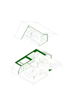 Logements ou commerces ? Cette question a marqué la planification. La réponse : les deux. La mixité des usages garantit flexibilité, durabilité et commercialisation. Un noyau central en bois avec cuisine, sanitaires et réduit constitue la colonne vertébrale fonctionnelle des étages. L'impression d'espace ouvert est ainsi préservée et les surfaces peuvent être utilisées de manière polyvalente.