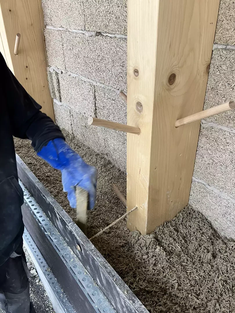• Construction hybride chanvre-chaux et structure en bois, paroi ouverte à la diffusion de vapeur (sans membranes)