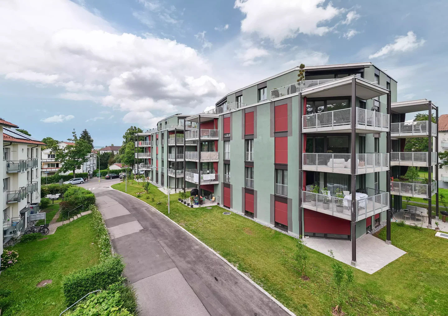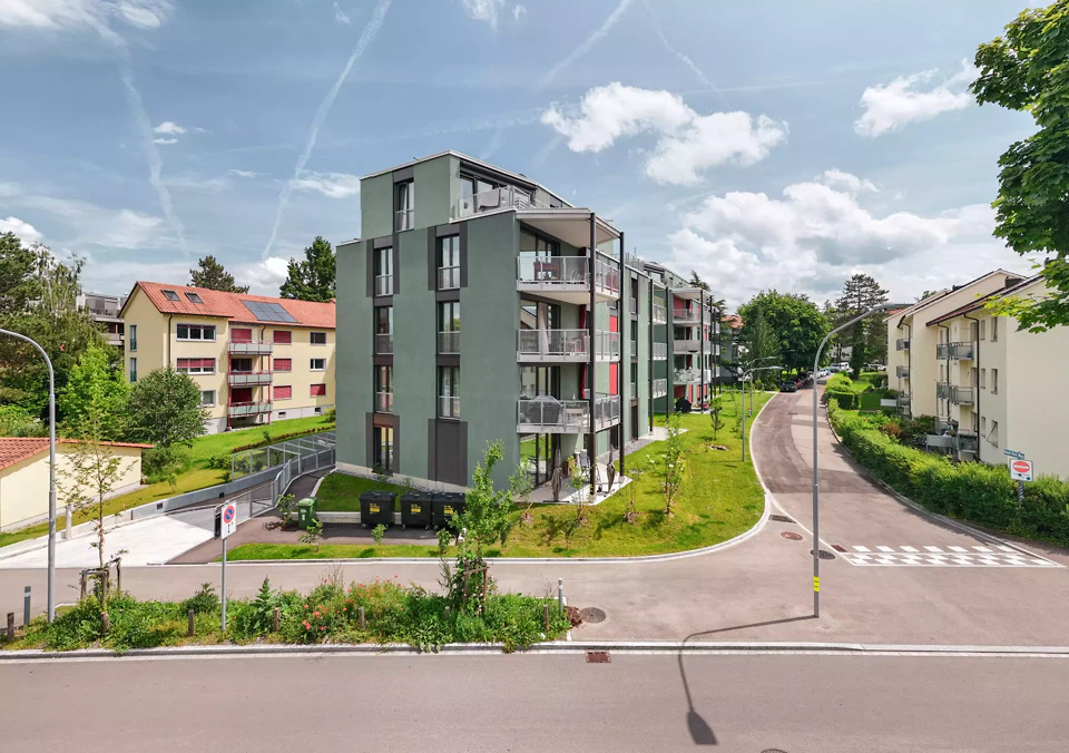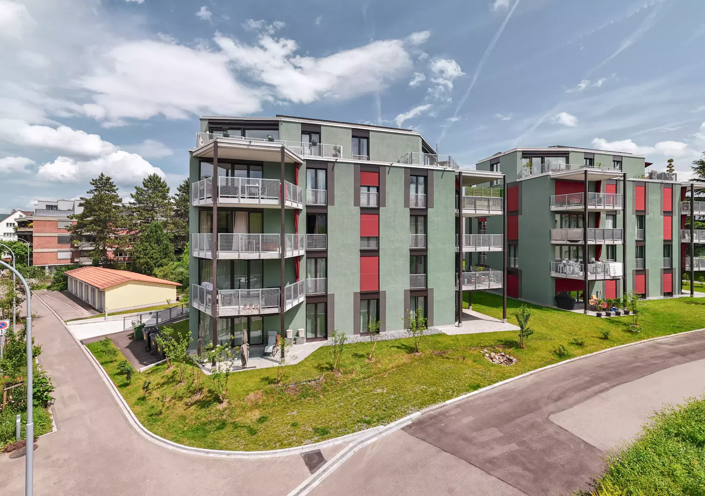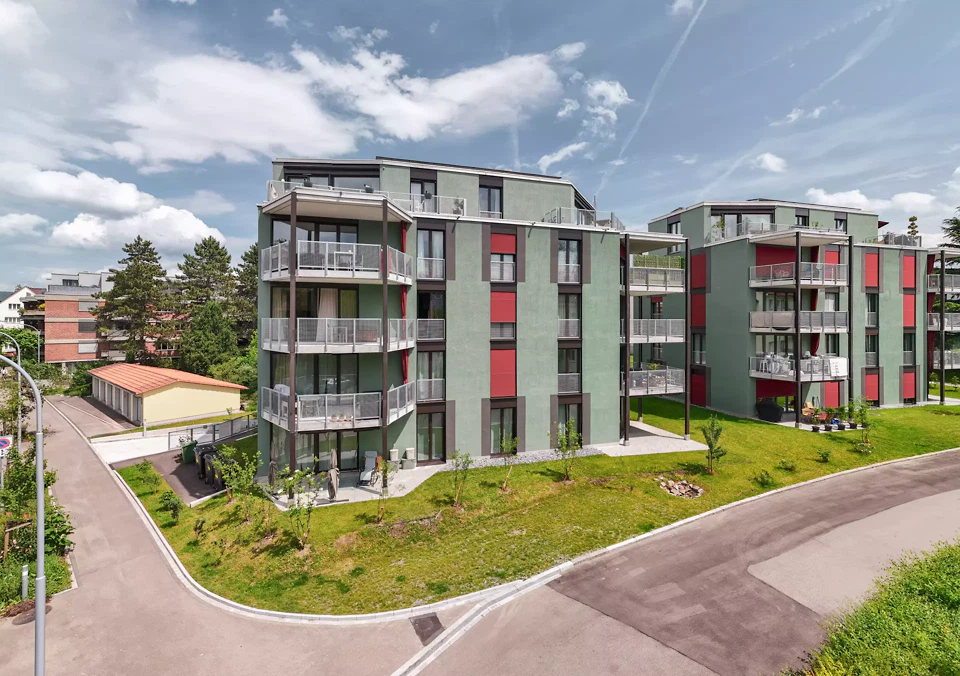 Le périmètre du projet se situe dans la partie sud de Wollishofen, dans un quartier résidentiel calme. Les environs sont caractérisés par des rangées de bâtiments construits au cours des 100 dernières années, comme la cité Werkbundsiedlung Neubühl datant de 1925, et par de vastes espaces verts. Le quartier compte également de nombreux jardins familiaux et potagers, ainsi que la forêt voisine d'Entlisbergwald. Les constructions d'origine sur la parcelle du projet et dans le voisinage immédiat le long du David-Hess-Weg étaient des immeubles en rangées de trois étages, légèrement décalés, avec des toits en pente. Une rénovation ou une extension de ces bâtiments n'aurait pas été rentable dans le cadre de la densification urbaine et compte tenu des possibilités offertes par le droit de la construction. C'est pourquoi deux nouveaux bâtiments de cinq étages ont été prévus. Les nouveaux appartements bénéficient d'espaces extérieurs verdoyants attrayants et d'un quartier résidentiel calme. Avec leurs balcons en saillie, les deux bâtiments reprennent les références et les qualités de l'espace extérieur et s'intègrent dans leur environnement comme un complément contemporain, choisi délibérément sur le plan architectural et formel. Les éléments de façade en saillie et en retrait rompent visuellement les grands volumes des nouveaux bâtiments. L'accentuation des lignes verticales par les balcons et les fenêtres confère en outre aux bâtiments une structure délicate. Au total, plus de 30 appartements différents sont en cours de construction, adaptés aussi bien aux petits ménages qu'aux colocations et aux familles.