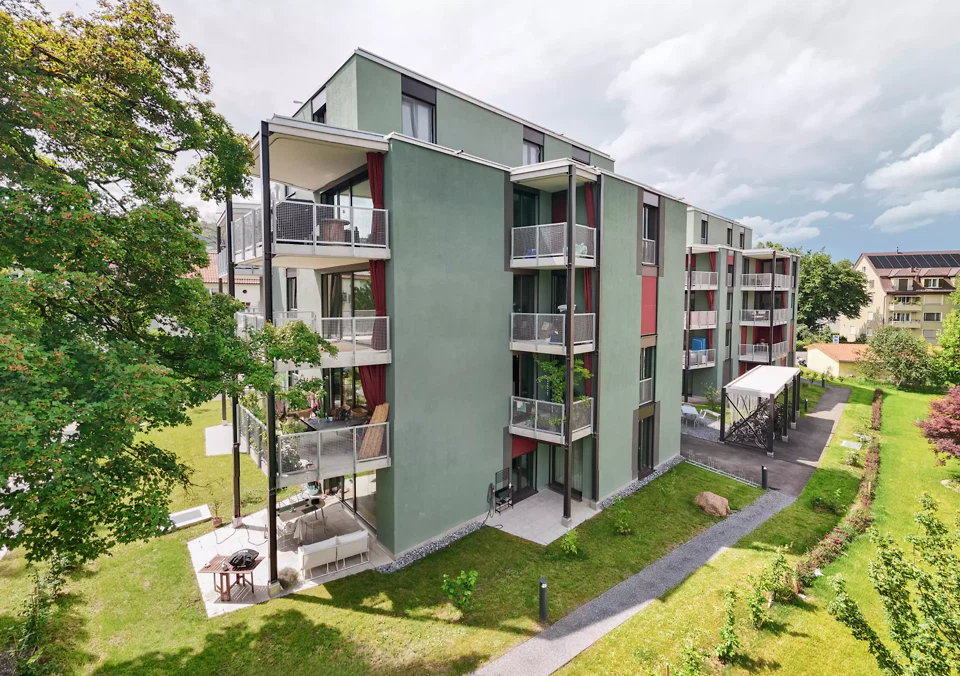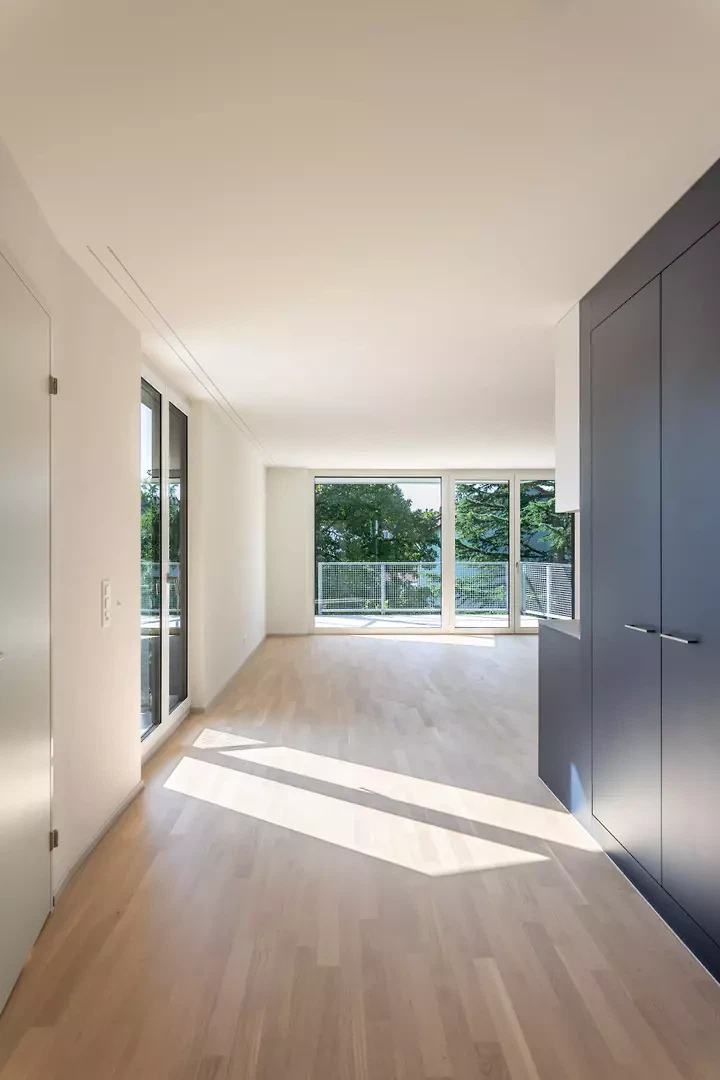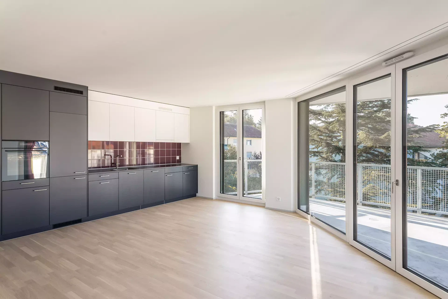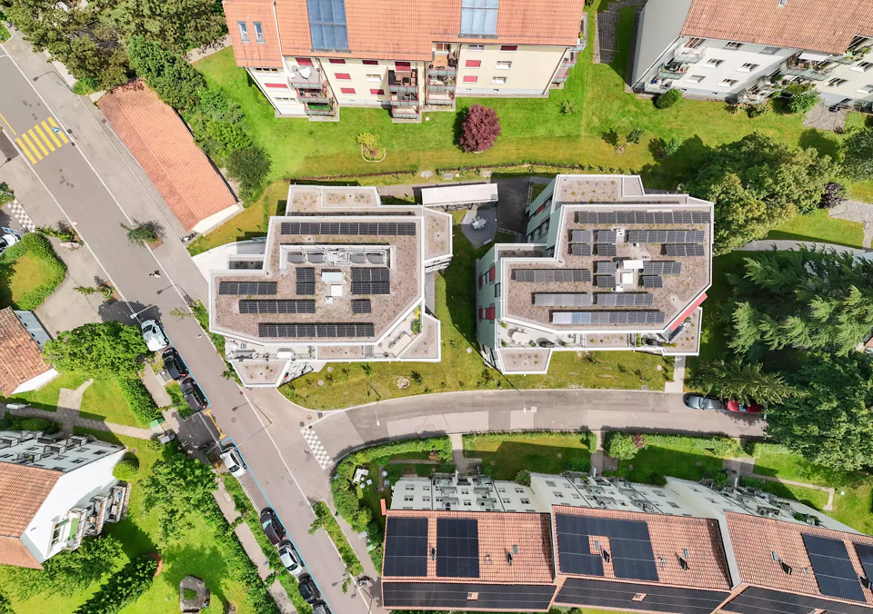 Le périmètre du projet se situe dans la partie sud de Wollishofen, dans un quartier résidentiel calme. Les environs sont caractérisés par des rangées de bâtiments construits au cours des 100 dernières années, comme la cité Werkbundsiedlung Neubühl datant de 1925, et par de vastes espaces verts. Le quartier compte également de nombreux jardins familiaux et potagers, ainsi que la forêt voisine d'Entlisbergwald. Les constructions d'origine sur la parcelle du projet et dans le voisinage immédiat le long du David-Hess-Weg étaient des immeubles en rangées de trois étages, légèrement décalés, avec des toits en pente. Une rénovation ou une extension de ces bâtiments n'aurait pas été rentable dans le cadre de la densification urbaine et compte tenu des possibilités offertes par le droit de la construction. C'est pourquoi deux nouveaux bâtiments de cinq étages ont été prévus. Les nouveaux appartements bénéficient d'espaces extérieurs verdoyants attrayants et d'un quartier résidentiel calme. Avec leurs balcons en saillie, les deux bâtiments reprennent les références et les qualités de l'espace extérieur et s'intègrent dans leur environnement comme un complément contemporain, choisi délibérément sur le plan architectural et formel. Les éléments de façade en saillie et en retrait rompent visuellement les grands volumes des nouveaux bâtiments. L'accentuation des lignes verticales par les balcons et les fenêtres confère en outre aux bâtiments une structure délicate. Au total, plus de 30 appartements différents sont en cours de construction, adaptés aussi bien aux petits ménages qu'aux colocations et aux familles.