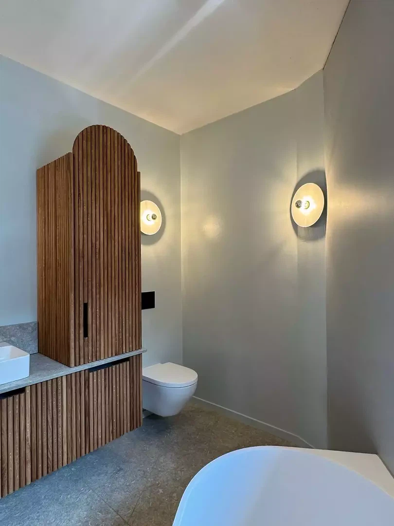 La durabilité fait partie intégrante de la logique constructive des matériaux. Le béton RC-C50, avec son ciment CEM-III à faible émission de CO₂, révèle après le bouchardage sa granulométrie composée de gravats de maisons démolies à Bâle et de petits éclats de briques, rendant visible le cycle des matériaux. Les poteaux porteurs sont majoritairement situés à l’extérieur et sont reliés aux dalles de béton par des consoles en porte-à-faux de chaque côté, via un anneau de béton. Cet anneau supporte les façades, les garde-corps et les stores à bras articulés pour la protection solaire. Pour la stabilité sismique, des voiles de contreventement sont intégrés au principe Dom-Ino. Ceux-ci sont conçus avec de grandes ouvertures circulaires pour économiser les matériaux. Les murs intérieurs en terre crue, issus du déblai du chantier, constituent le cœur écologique de la maison : locaux, purs, circulaires et exempts d’additifs. Ils stockent la chaleur, régulent l’humidité et assurent un climat intérieur stable. La brique de terre crue pressée a été choisie car le séchage a pu se faire à l’extérieur, sous une tente, évitant ainsi l’apport d’une humidité excessive pendant l’hiver. Ainsi naît une maison qui ne se conçoit pas comme un objet isolé, mais comme un prototype possible – un modèle montrant comment des matériaux régionaux, une clarté constructive et une simplicité spatiale peuvent définir une architecture résidentielle durable et être reproduits à plus grande échelle.