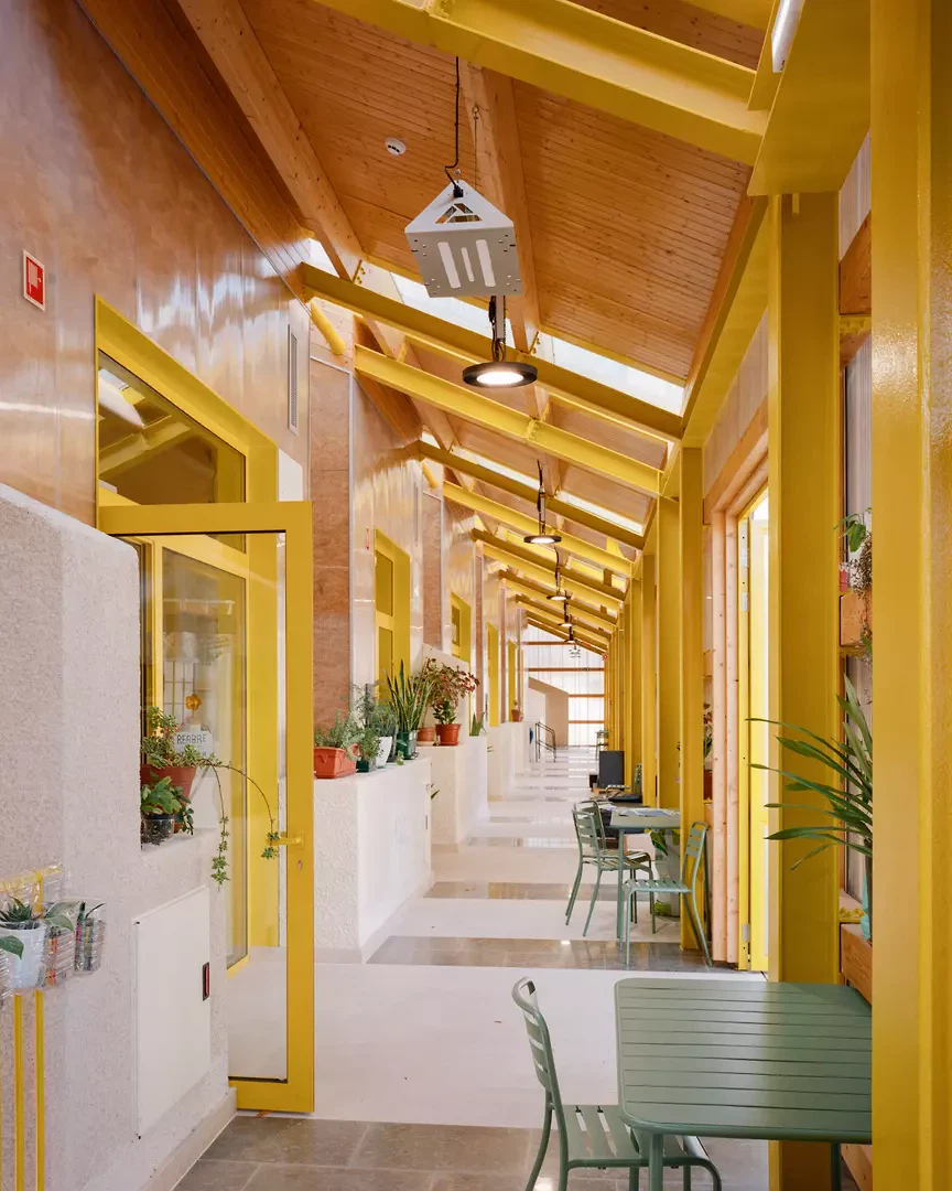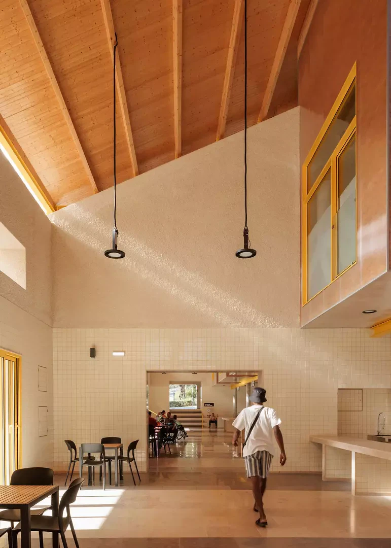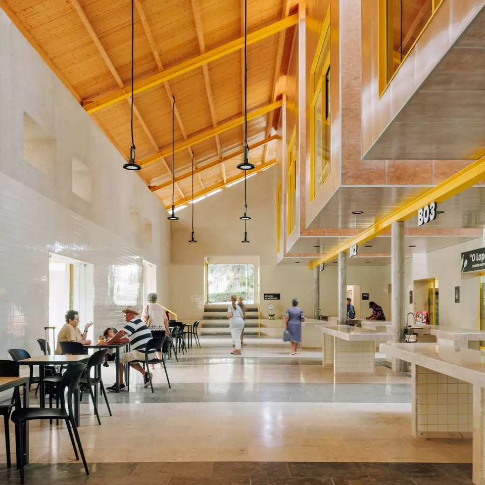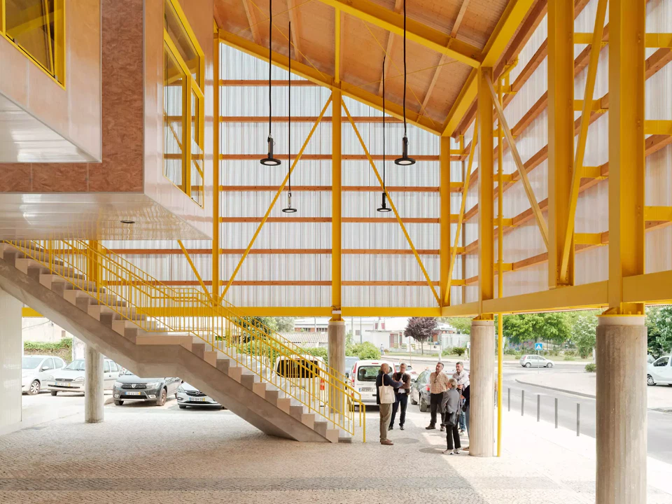 Situé à la périphérie de Lisbonne, dans le quartier de Carnide, le quartier de Padre Cruz s'est transformé, passant de terres agricoles à l'un des plus grands ensembles de logements sociaux de la péninsule ibérique. Dans les années 1960, une ancienne ferme laitière a été transformée en halle et s'est imposée comme le nouveau lieu de rencontre de la communauté. Le projet redéfinit le hall principal en introduisant un programme d'utilisation flexible et en réorganisant les magasins existants. De plus, un nouvel étage comprenant des espaces multifonctionnels vient compléter le bâtiment, notamment une terrasse, un auditorium ainsi qu'un atrium ouvert sur l'espace de la rue. Les interventions préservent le caractère social et culturel du bâtiment et associent des matériaux locaux à une structure de toiture légère.