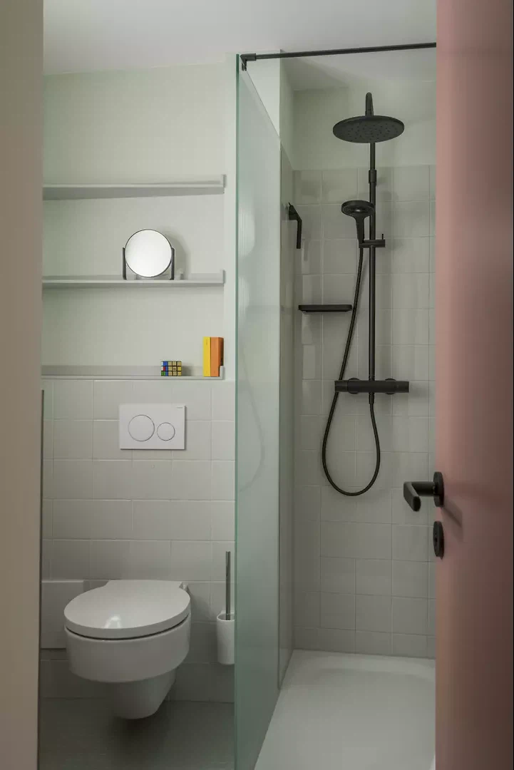 L'un des principaux défis de la rénovation consistait à travailler dans les limites du bâtiment existant datant des années 1970, qui n'était pas conçu pour un mode de vie moderne dans un espace réduit. La disposition initiale des pièces était inefficace en raison d'espaces de circulation gaspillés et de zones indéfinies, ce qui donnait l'impression que l'appartement était plus exigu qu'il ne l'était en réalité. Pour y remédier, nous nous sommes concentrés sur l'utilisation optimale de chaque mètre carré grâce à un aménagement stratégique de l'espace. Nous avons réduit au minimum les surfaces de circulation, créé des zones multifonctionnelles et utilisé des solutions encastrées pour créer une sensation d'ouverture sans limiter la fonctionnalité.