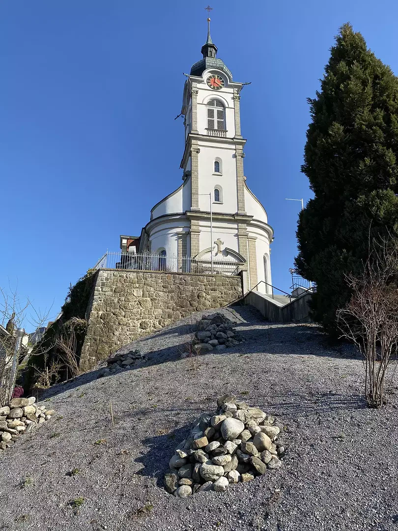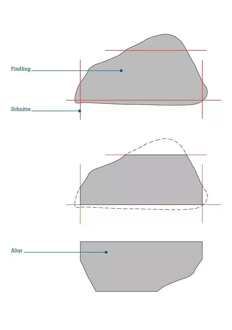 Tout comme l'architecte August Hardegger s'est inspiré des églises baroques de la région pour concevoir l'église Sainte-Anne, nous avons souhaité intégrer le contexte géographique dans notre projet. Nous ne nous sommes pas référés à un style, mais au phénomène géologique des blocs erratiques, qui constituent un élément caractéristique du paysage dans la région des Préalpes. Sur la route entre Samstagern et Schindellegi se trouve un magnifique exemplaire d’un tel bloc erratique, qui a constitué une source d’inspiration supplémentaire pour notre projet.