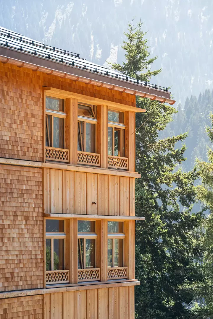 Le nouveau bâtiment de la Casa Depuoz est un lieu où l'architecture durable devient un espace de bien-être – un foyer qui offre sécurité, autonomie et vie communautaire. Il offre à douze adultes souffrant de troubles cognitifs un foyer protégé où ils peuvent vivre en toute autonomie. L'entrée se trouve à un carrefour entre l'école, la gare et le centre-ville. Une place ouverte avec une fontaine et un érable sycomore marque l'arrivée et favorise les rencontres entre les résidents, les invités et les habitants. Le nouveau bâtiment s'inscrit dans une démarche de responsabilité envers les personnes et l'environnement. L'utilisation de matériaux disponibles dans la région et le renoncement délibéré aux produits finis réduisent la consommation d'énergie non renouvelable. Une installation photovoltaïque et le chauffage urbain garantissent un fonctionnement responsable. La construction et l'exploitation du bâtiment sont inférieures aux valeurs de référence de la norme SIA 390/1. Il s'inscrit dans une harmonie durable avec le lieu, l'époque et la société. Construit à partir de 230 mètres cubes de bois suisse et recouvert de bardeaux de mélèze fendus à la main, le bâtiment dégage une impression de chaleur et de soin artisanal. La façade fait référence au contexte historique et s'intègre naturellement dans le village. Les constructions préfabriquées en bois pour les murs et les plafonds, réalisées à partir de bois local, raccourcissent les distances de transport, renforcent l'artisanat local et permettent une construction durable. Chaque étage forme un groupe d'habitation indépendant avec un salon et une salle à manger communs, qui s'ouvrent vers le sud et suivent la course du soleil. À la jonction entre la communauté et la retraite se trouve la salle des soignants, qui fait le lien entre les pièces animées au sud et les chambres plus calmes des résidents à l'arrière. Les sols en terre battue et les enduits d'argile caractérisent l'intérieur et contribuent de manière significative à un climat intérieur sain et au bien-être. Ce nouveau bâtiment est plus qu'un simple bâtiment: c'est un lieu d'échange où les matériaux, la lumière et l'espace procurent un sentiment de sécurité et rendent visible une attitude de vie communautaire.