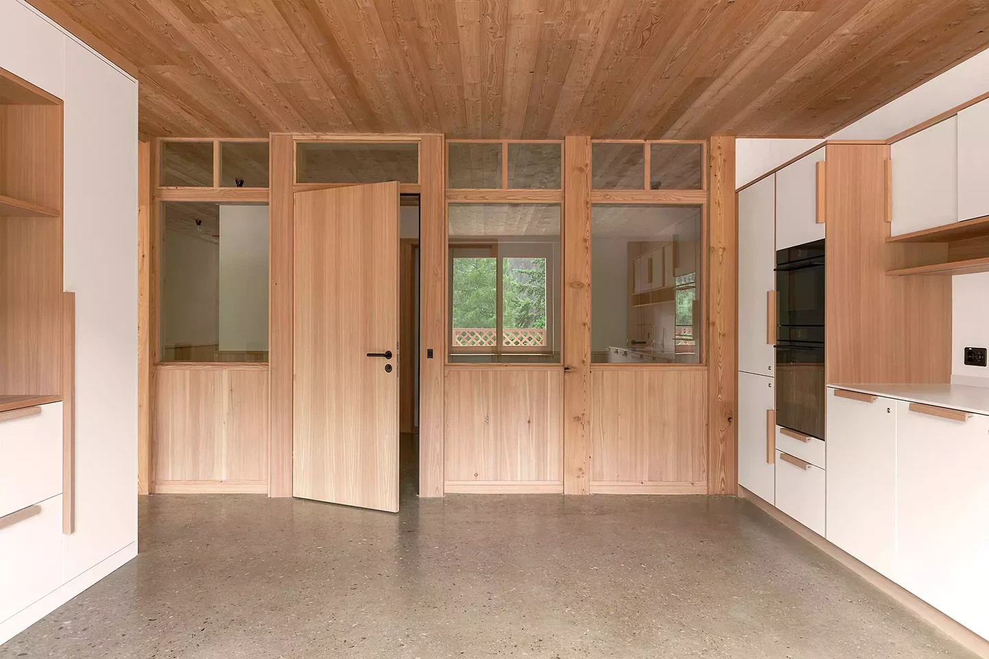 Au cours du processus, nous avons accordé une importance particulière à une organisation claire et intuitive des espaces, qui favorise l'orientation, la sécurité et l'autonomie. L'organisation spatiale suit le principe d'une succession consciente de rencontres et de retraites : les espaces communs favorisent les échanges et la cohabitation, tandis que les chambres privées offrent des lieux de retraite protégés. Il était également important pour nous de favoriser le bien-être des résidents par le choix des matériaux. C'est pourquoi nous avons systématiquement misé sur des matériaux naturels et peu polluants: le bois, l'argile sous forme d'enduit et le sol en pisé garantissent un climat intérieur sain, ont un effet apaisant et procurent un sentiment de sécurité.