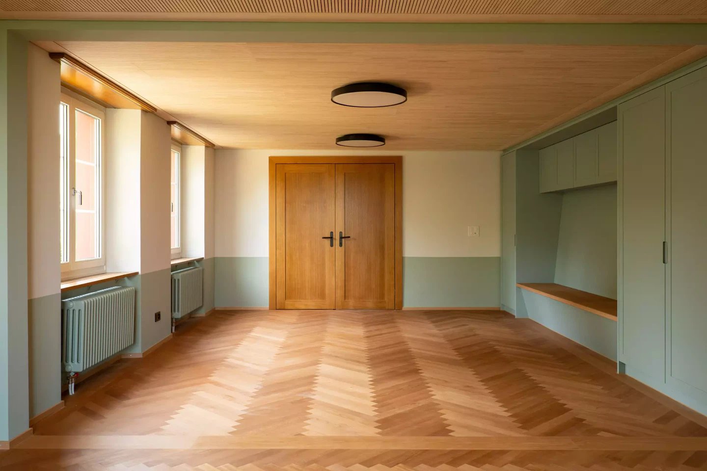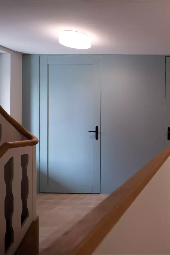 À une époque où, dans de nombreux endroits de Suisse orientale, les presbytères historiques des villages sont vendus et réaffectés, le presbytère d’Altnau peut être maintenu grâce à un concept d’utilisation judicieux. Les contraintes financières ont été définies de manière particulièrement serrée et ont constitué la base commune d’une étude de thèse. Notre inspiration pour ce projet réside dans le constat que ce bâtiment protégé a déjà été transformé à plusieurs reprises au cours des 300 dernières années. Différentes traces et strates y sont ainsi restées visibles. Une question nous a guidés: pourquoi certaines choses ont-elles perduré? Qu’il s’agisse de ferrures de portes, d’éléments intégrés ou de revêtements. Sur cette base, nous avons développé un concept complémentaire, conservé les fenêtres des années 1990, isolé le bâtiment protégé là où cela était pertinent, et poursuivi sa transformation avec retenue. La palette chromatique existante a été déterminée à partir d’une analyse; nous l’avons reprise, complétée et développée.