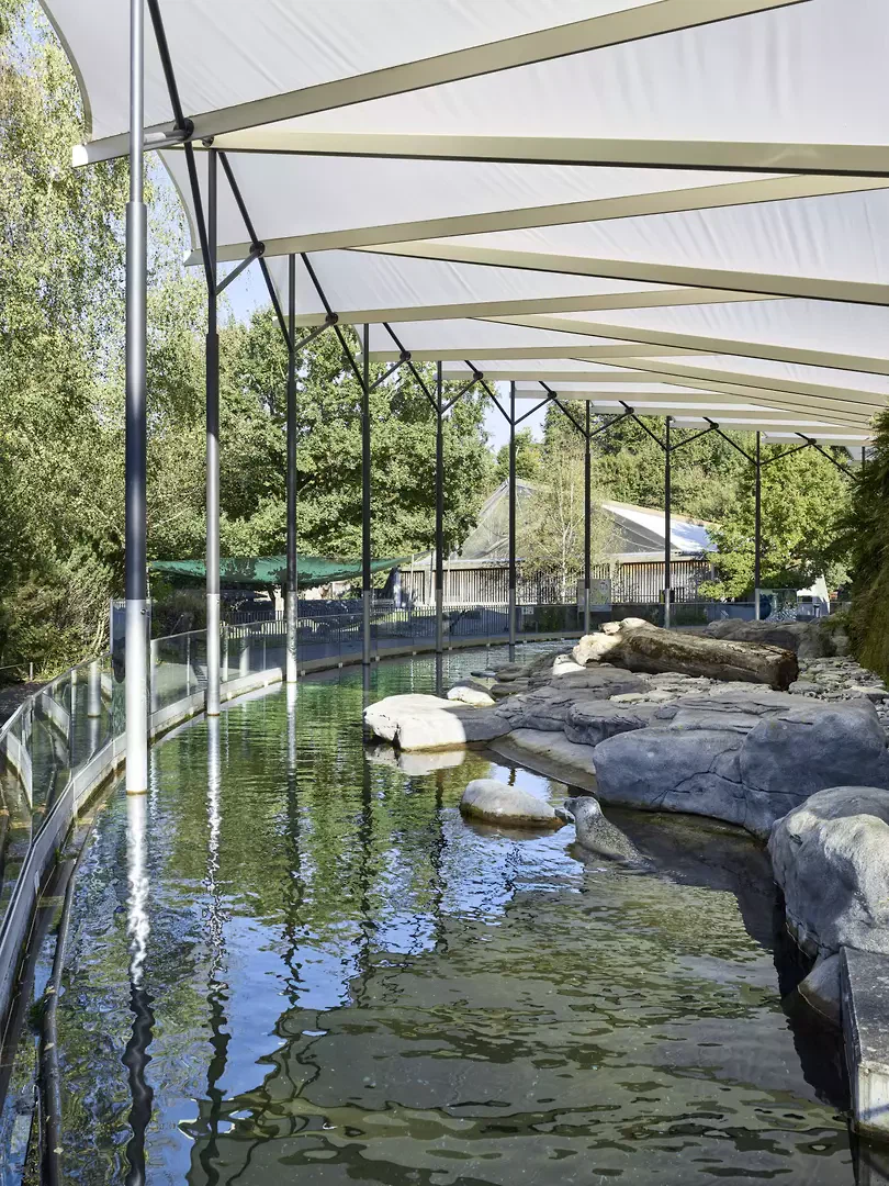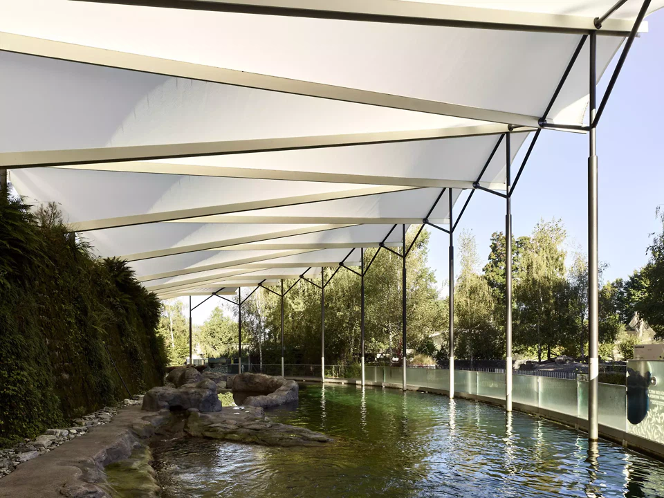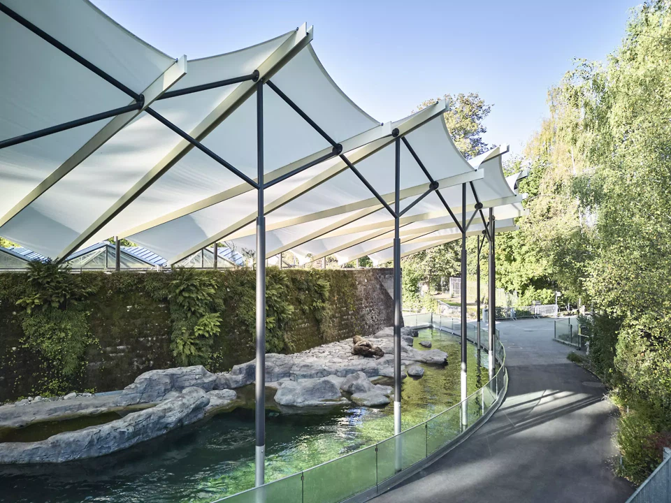 La rénovation complète du bassin des phoques au zoo de Berne exigeait non seulement un aménagement naturel et varié des bassins, mais aussi la mise en place d'un système d'ombrage couvrant une grande partie des zones de repos des animaux. Les phoques du zoo passant beaucoup plus de temps à la surface de l'eau que dans la nature, ils étaient très sensibles à l'exposition directe au soleil.