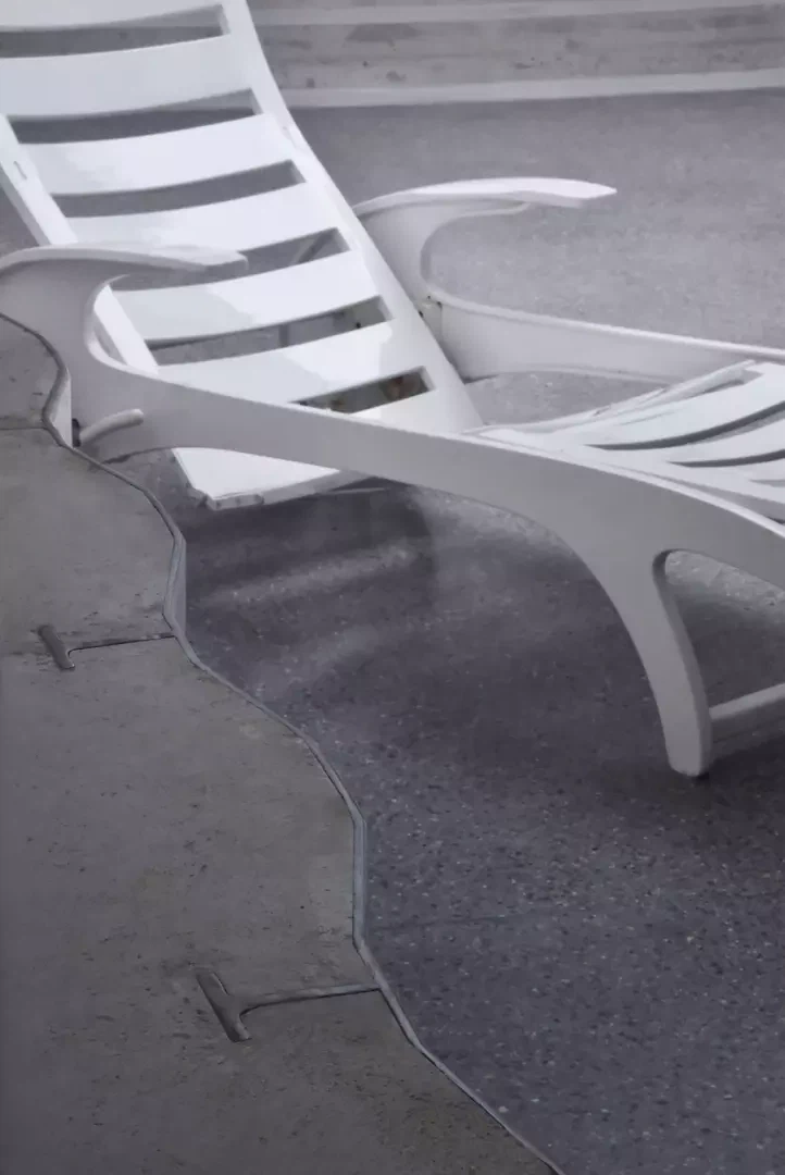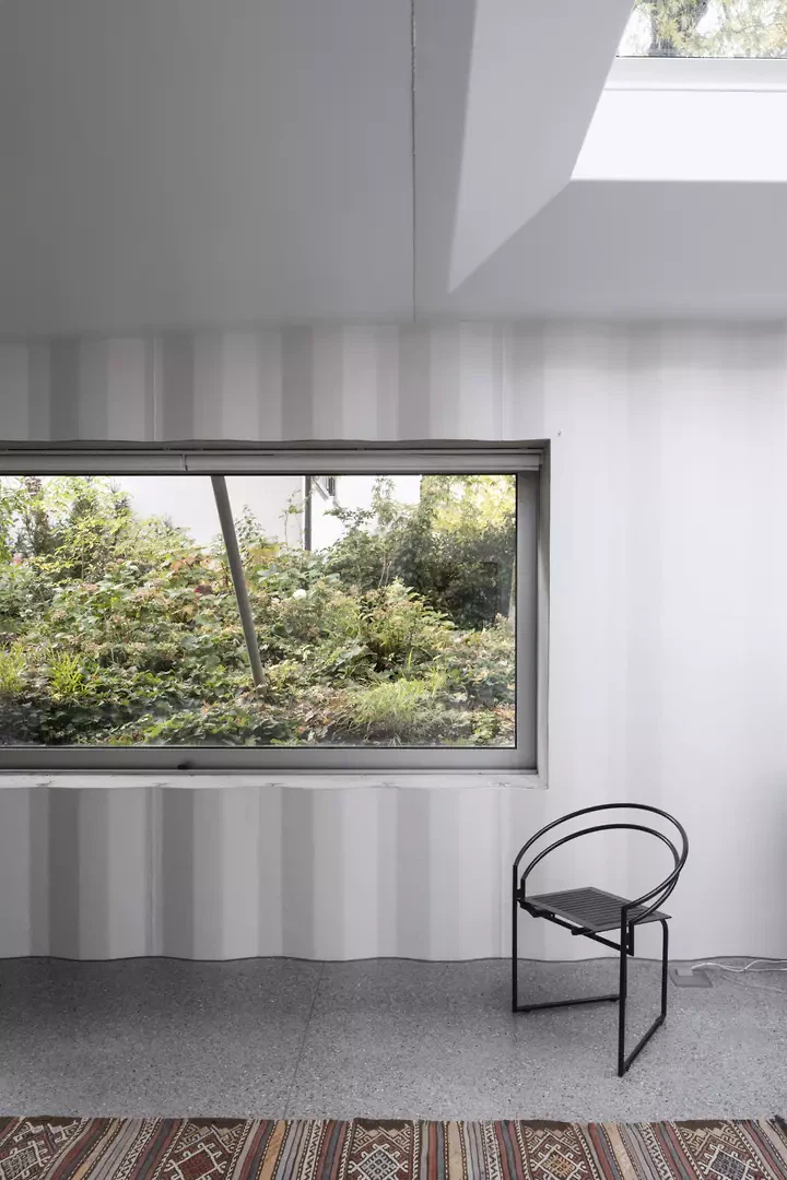 La piscine couverte préfabriquée souterraine datant des années 1970 est un vestige des besoins passés. Après cinquante ans, elle ne répond plus ni aux besoins, ni au confort, ni aux exigences techniques. Grâce à des interventions minimales, elle se transforme d'un espace obsolète et extraordinaire en un salon. Des ouvertures astucieuses vers l'extérieur et la pose d'un nouveau sol lui insufflent une nouvelle vie. Une ouverture directe a été découpée dans la tôle d'acier profilée verticalement et renforcée à l'extérieur avec du béton. Cela crée non seulement un lien visuel avec l'espace extérieur inférieur, mais expose également la structure en acier unique. Le seuil entre le nouveau et l'existant, ainsi qu'entre l'intérieur et l'extérieur, est souligné, les fissures poétiques sont prolongées.