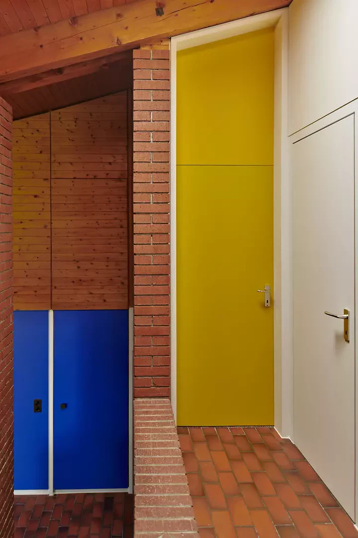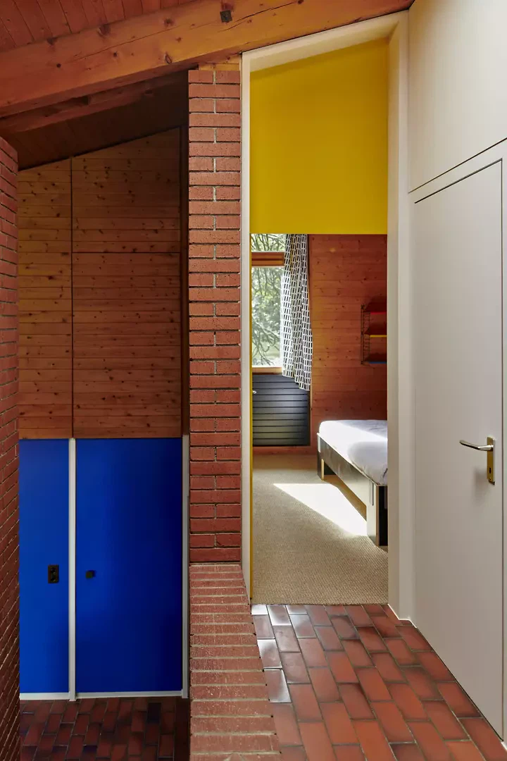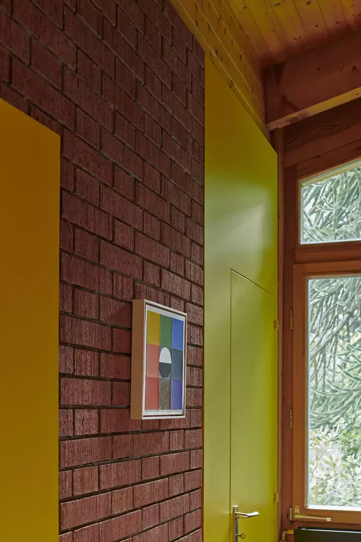 Les fenêtres avaient des cadres en bois massif et un simple vitrage. Le sol est recouvert de carreaux de clinker rouges. Les murs sont en briques apparentes avec des joints creusés, et le salon et les chambres sont recouverts de moquette en fibre de coco. Les portes et les cloisons en bois sont peintes avec une laque brillante bleu foncé, jaune et blanc ivoire. Le chauffage fonctionnait avec un brûleur à mazout.