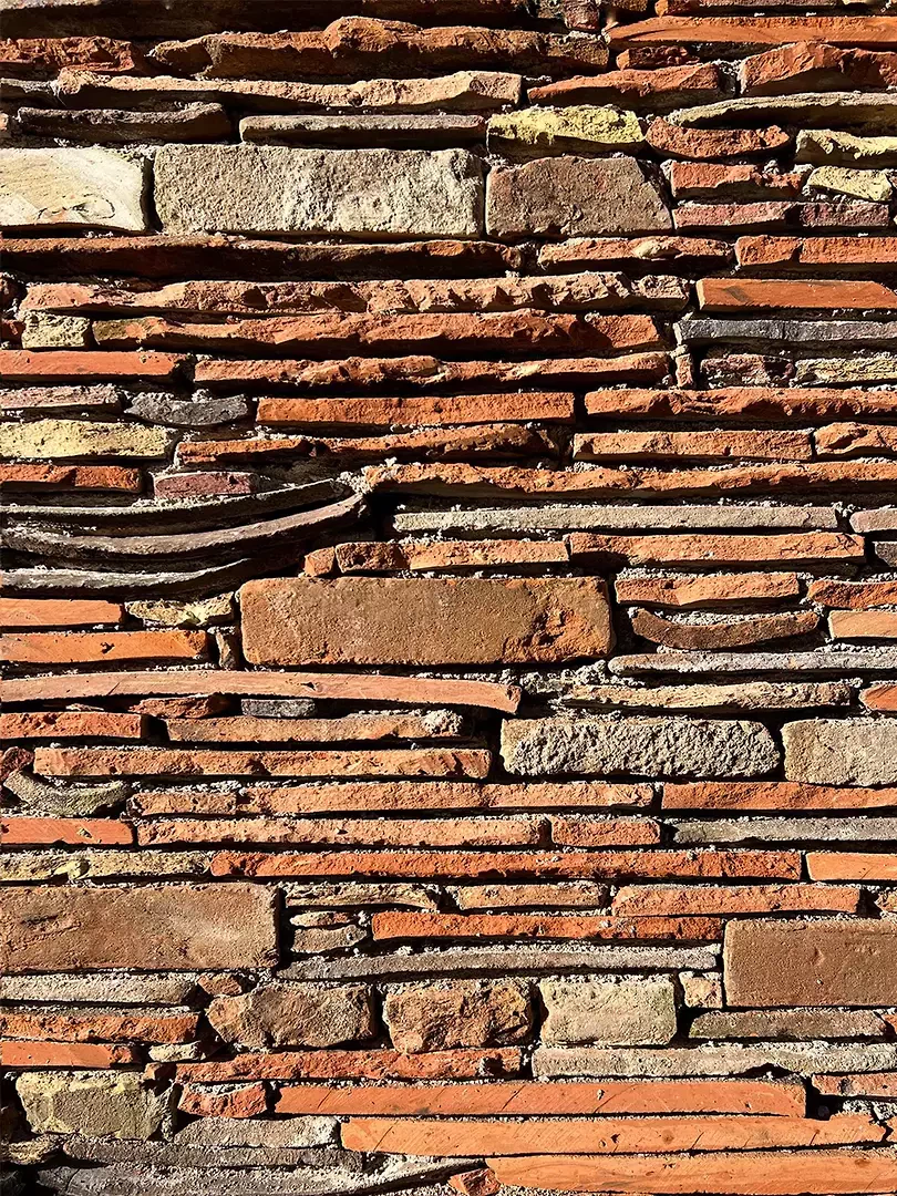 La rénovation du bâtiment historique, une ancienne installation de séchage transformée en atelier, prévoit la mise en place d’une nouvelle structure en acier, réalisée à l’intérieur du bâtiment existant, afin de stabiliser l’ancienne maçonnerie, de relier les planchers existants et de supporter la nouvelle toiture en acier. Celle-ci permet de soulager et de préserver les charpentes d’origine, particulièrement caractéristiques. La nouvelle structure en acier se compose de poteaux (demi-profils IPE240), de profils de linteau (HEB120) pour les planchers et de profils HEB140 formant les charpentes de la nouvelle toiture. Le bâtiment a été fermé par de grandes baies en double vitrage, posées directement sur la structure porteuse, ce qui a permis d’éviter des profils supplémentaires pour les fenêtres et les portes. La «Maison des fours» est un nouveau bâtiment doté d’une structure métallique préfabriquée, revêtue de briques réemployées (anciennes briques d’origine cassées, posées en rangées horizontales selon un appareillage de type «opus testaceum»). La façade principale du bâtiment se compose de quatre portails métalliques en fer naturellement oxydé, derrière lesquels sont installés deux fours à gaz spécialement conçus pour ce projet, permettant la cuisson de céramique, y compris de grands formats. Les fours sont équipés de deux cheminées hexagonales, également revêtues de tuiles de récupération brisées.