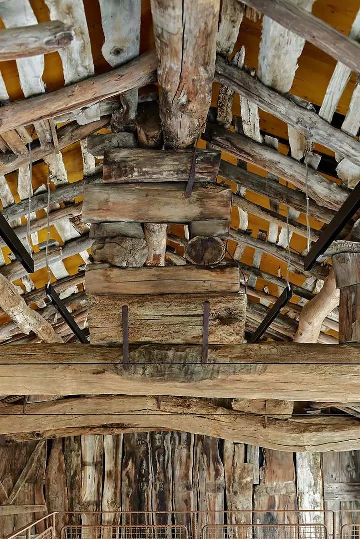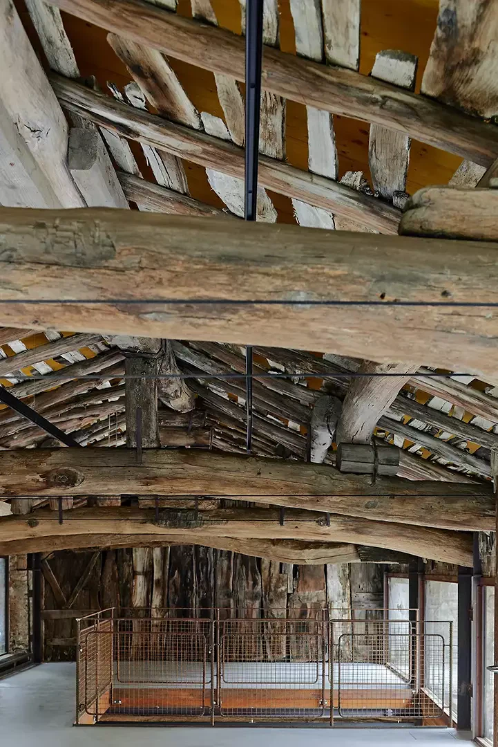 Il s’agit d’un projet tout à fait particulier. Le résultat met en valeur le bâtiment historique grâce à la finesse des poteaux et à la surface «naturellement oxydée» (rouillée) de l’ensemble des profils. L’ensemble de la construction métallique (structure porteuse, couverture, fenêtres et appuis de fenêtre) a été réalisé de manière «artisanale», toutes les mesures ayant été prises sur place et chaque élément fabriqué de façon à s’adapter aux irrégularités du bâtiment historique.