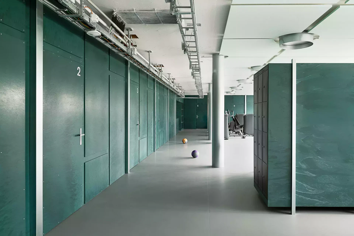 Une paroi en verre profilé diffuse une lumière homogène et non éblouissante jusque dans la profondeur du plan. Les cavités internes assurent une diffusion uniforme et rendent exploitable, comme espace d’entraînement et de séjour, une zone auparavant insuffisamment éclairée.