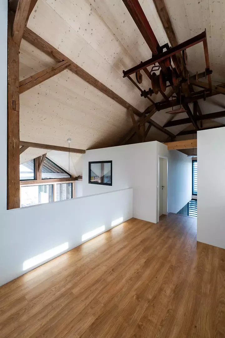 Face au champs, au coeur d’un village cette ferme vaudoise traditionnelle est encore en activité. Les parents n’ayant plus besoin du pont de grange pour l’activité agricole, la fille a décidé de faire appel à *tangram pour transformer cet immense volume en un logement pour sa famille.