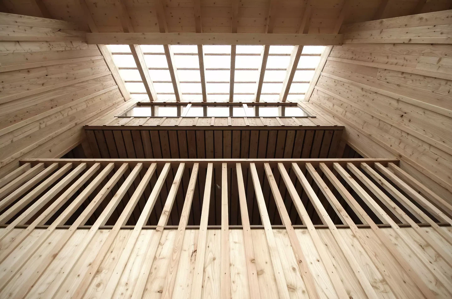 Construit en 1939, le bâtiment accueillait à l’origine une tannerie organisée sur deux niveaux : un rez-de-chaussée destiné au nettoyage des peaux et un étage supérieur dédié à leur séchage. La construction, sans excavation, associe une maçonnerie massive au rez-de-chaussée à une structure en bois en partie haute, couverte d’une toiture à deux pans revêtue de tuiles. Son implantation libre — non contiguë aux constructions voisines — et sa morphologie singulière témoignent de son usage initial et le distinguent des typologies médiévales environnantes. L’intervention vise à réhabiliter l’ensemble du volume existant pour y aménager deux logements. Un premier appartement est disposé au rez-de-chaussée, en lien direct avec un jardin. Le second, configuré en duplex, s’étend sur les deux niveaux supérieurs et bénéficie d’une terrasse. La distribution intérieure reprend la partition originelle du bâtiment, tandis que les matériaux et éléments constructifs existants — murs en maçonnerie, charpente bois, toiture en tuile — sont conservés et mis en valeur. Une attention particulière a été portée à l’intégration de l’intervention dans le contexte historique environnant. Un nouveau balcon en encorbellement, prolongé par une avancée de toiture, offre un espace extérieur couvert au logement du rez-de-chaussée. Le bardage en bois de la façade supérieure a été retravaillé pour former un claustra en pivotant les planches, filtrant ainsi les ouvertures et apportant une expression contemporaine discrète à l’ensemble. Le projet se veut une réinterprétation respectueuse du bâtiment d’origine. Il s’inscrit dans une logique d’intervention minimale, privilégiant la continuité du langage architectural tout en introduisant des éléments contemporains sobres. Cette démarche a permis de valoriser un édifice secondaire du tissu ancien tout en l’adaptant aux besoins d’habitat actuel, dans un esprit de cohérence et de dialogue avec le site patrimonial.