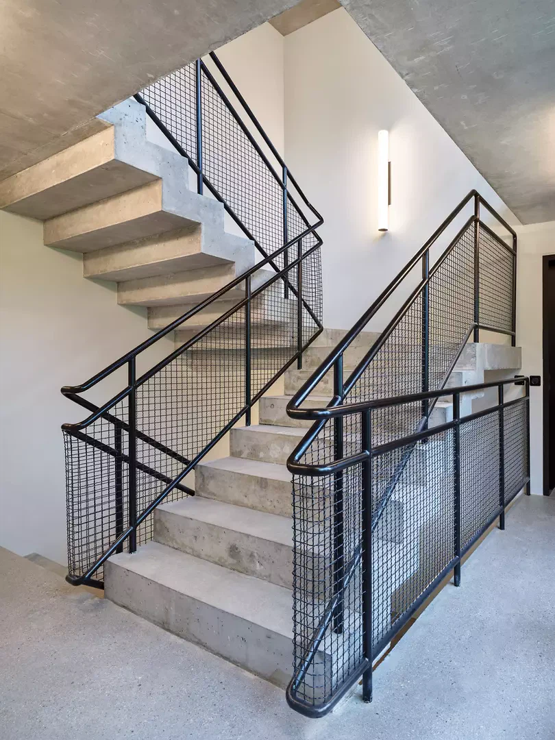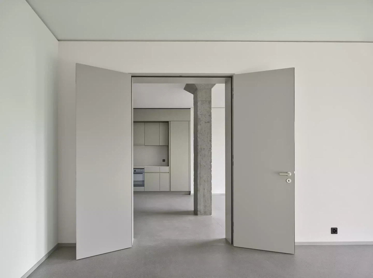 Le caractère légèrement industriel de l’ancien bâtiment commercial est accentué dans le cadre de la reconversion par un concept d’appartements de type loft et par le choix des matériaux, et est accessible par quatre escaliers via la cage d’escalier existante.