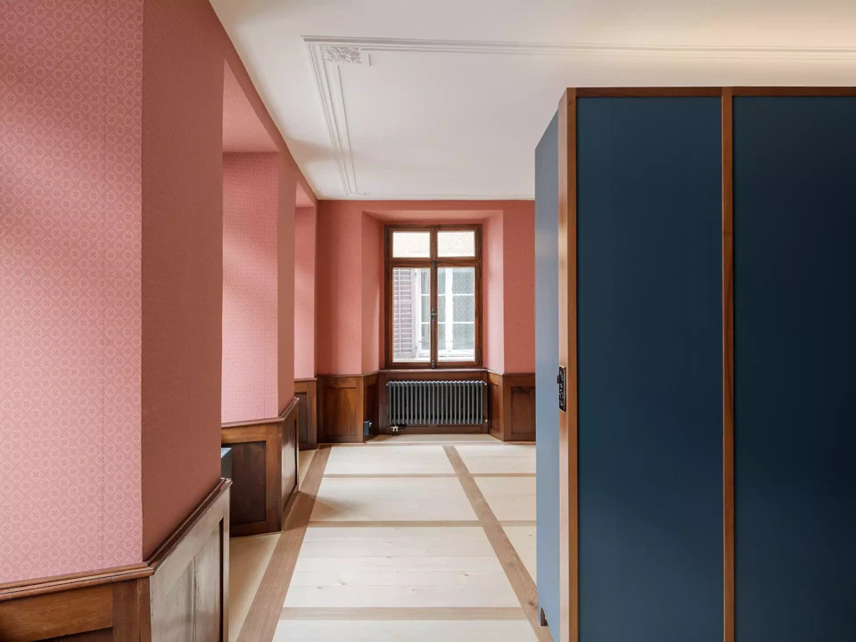 La particularité de ce projet résidait dans la coexistence d’un besoin urgent d’intervention et d’une substance historique exceptionnelle. La prolifération fongique et les dommages structurels exigeaient des interventions rapides et en profondeur, tandis que l’aménagement existant imposait une retenue précise. Les deux devaient être menés de front. L'inspiration est venue directement du bâti existant. Sous les couches récentes sont apparues des surfaces, des coloris et des structures spatiales qui révélaient ce que le bâtiment avait été et pouvait redevenir. Ce constat n'était pas une contrainte, mais la base du projet.